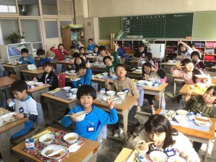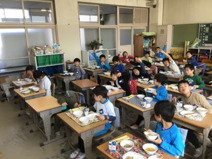 授業4時間がんばって、おなかがすきました。でも、おいしい給食が!ごちそうさまでした。