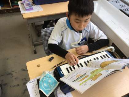 「こぐまの2月」の新しい箇所を、練習しました。友だちの音を聞き合いながら、進めました。