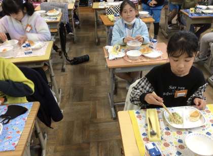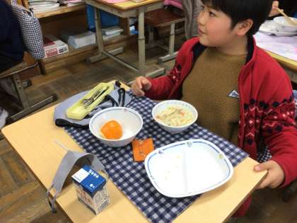 今日のメニューは、ツイストパン、マカロニのクリーム煮、ツナサラダ、いよかんでした。今日も美味しくいただきました。