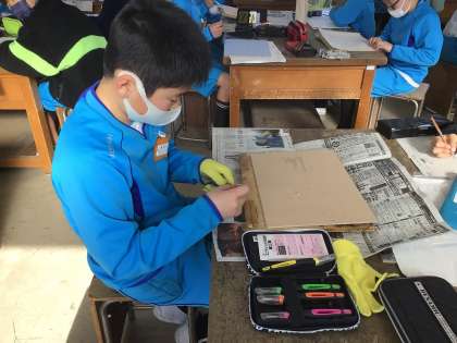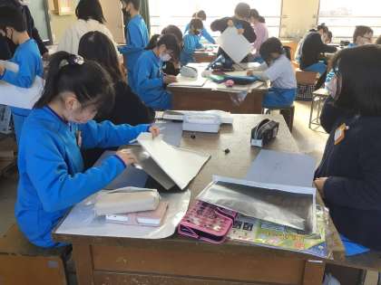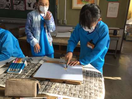 こちらは、1組の授業です。今回のテーマは、「ほって すって 見つけて」です。