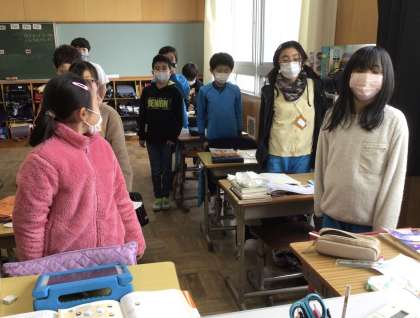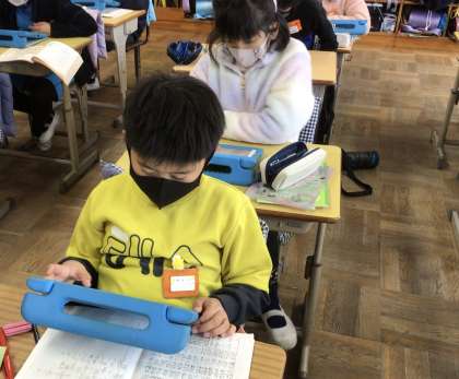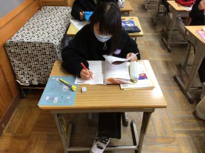 分数の単元テストに備えて、自分のペースで多くの練習問題を解きました。授業の終わりの挨拶の気をつけの姿勢も素敵です。