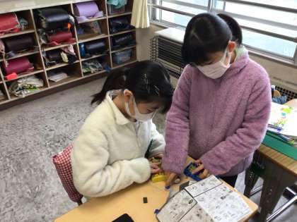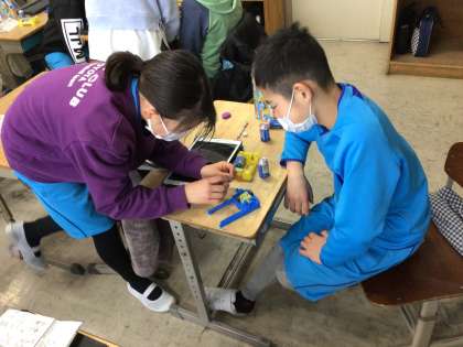 電磁石を使って、モーターの実験を行いました。お互いに教え合う姿が見られて、とても良かったなと思います。