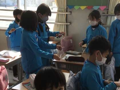 ぶんぶんごまが出来上がった子から、回し始めました。「ぶ〜んぶ〜ん、って聞こえた!」と、うれしそうな声が聞こえましたよ。