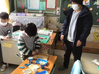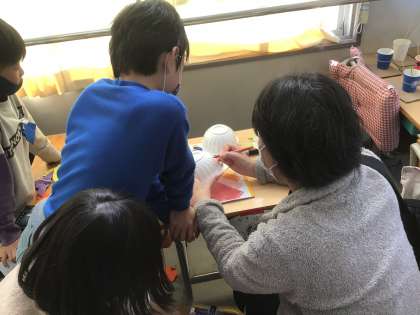「おもちゃパーティ」2日目でした。お客さん(お家の方)が来てくださり、おもちゃを一緒に作ったり遊んだりしました。