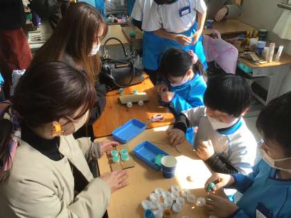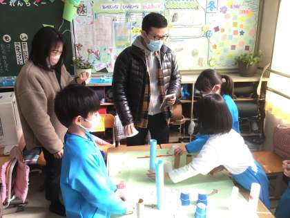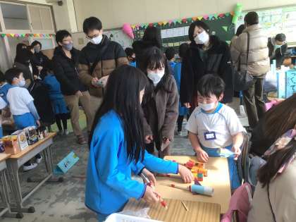「おもちゃパーティ」3日目です。雰囲気に慣れ、説明がスムーズに行われていました。一緒におもちゃを作ったり遊んだりしました。