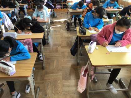 今日は、新出漢字のテストを行いました。