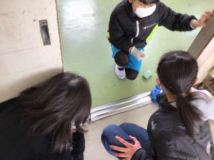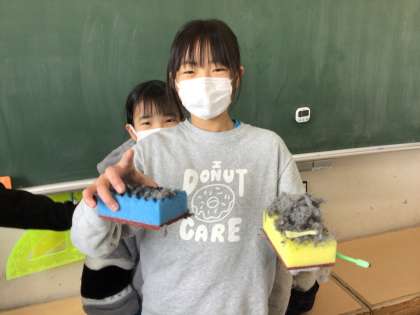 掃除道具を持ち寄り、いろいろな掃除道具を試しながら、大掃除を行いました。