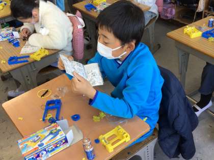 説明書を見ながら、集中して取り組んでいます。