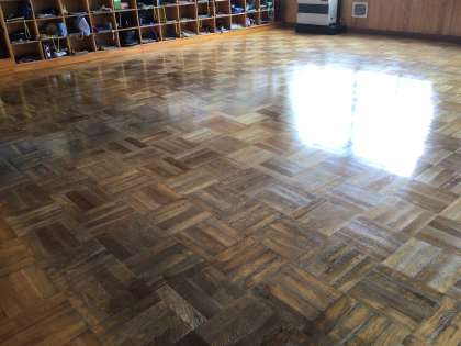 2組と4組が教室の大掃除を行いました。教室を隅々まできれいにしました。机とイスの足の裏の汚れを割り箸を使ってきれいに取り除きました。その後、床のワックスがけを行いました。
