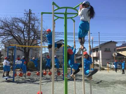 遊具で、体を動かして楽しみました。のぼりぼう、楽々のぼっていました。
