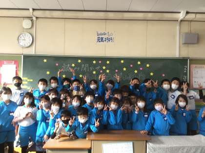 読み聞かせボランティアの方に、感謝の気持ちを伝えました。黒板にも、思いを描き込みました。