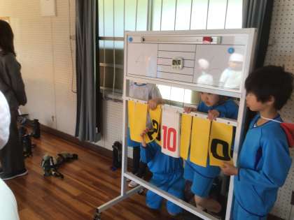 試合では、審判がいたり得点係がいたり、いろいろな場で活躍している子がいました。