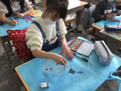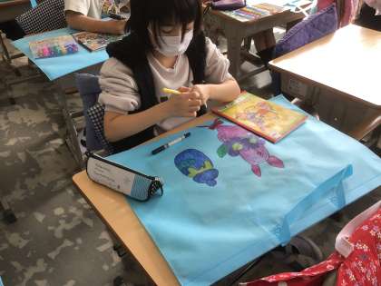 作品バッグに、1年間の作品を詰めます。どんな作品があったかな?