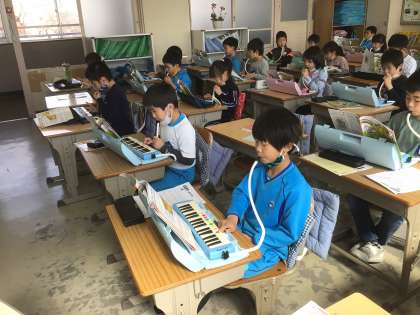 今日は、鍵盤ハーモニカの練習を行い、みんなとの合奏に備えました。鍵盤ハーモニカ、とても上手に吹いていましたよ。