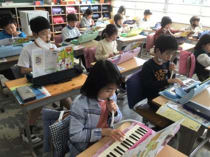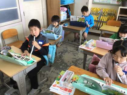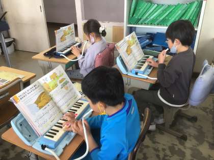 教科書をしっかりと見て、演奏です。どのパートにも、挑戦していました。
