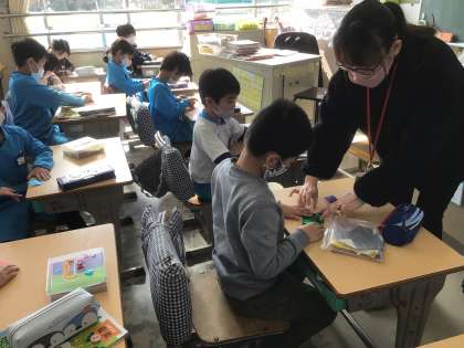 図工の先生に、折り紙で作る花を教えていただきました。画像を見たり、友だちにも教えてもらいながら、一緒におりました。