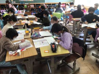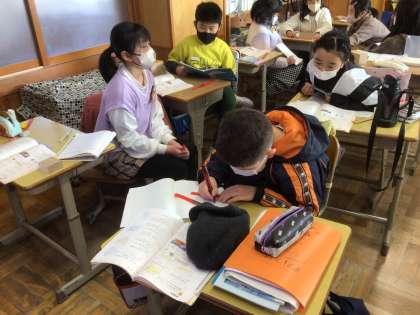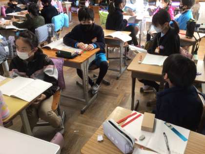 直方体の面と辺の位置関係を考えました。考えたことをグループで話し合いました。
