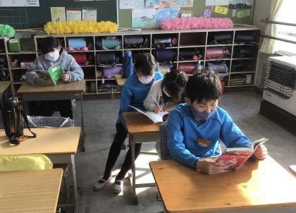 3組の今朝の様子です。読書をしている子もいます。