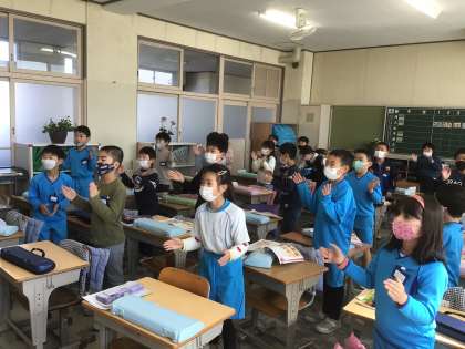 今年度、最後の音楽の授業です。はじめの歌から、元気いっぱいです。