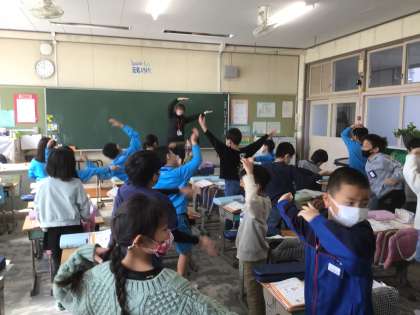 「ドレミのうた」の場面です。体も使って、歌って楽しんでいます。自然に笑顔になりますね。
