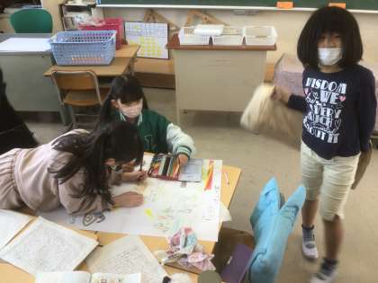 班で協力して、外国の食べ物やスポーツ、生き物などいろんなことを調べました。