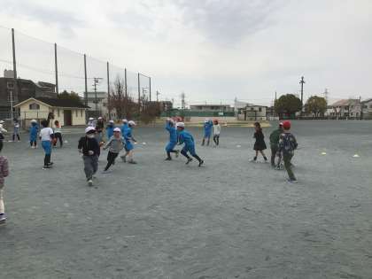 「おにごっこ」です。おにがどんどん増える、増えおにです。一瞬でみんな捕まってしまいました。足も速くなっています。