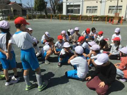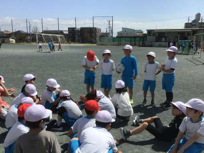 遊びの説明も、しっかりできました。ドッジボールけりです。