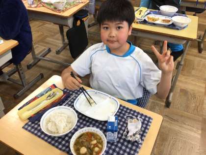 4年生での最後の給食です。