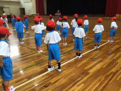 今日は、体育館で順番に並ぶ「背の順」の練習をしました。その後は、じゃんけん大会です。みんなで体を使って、楽しみました。