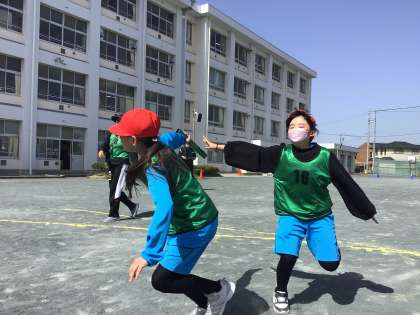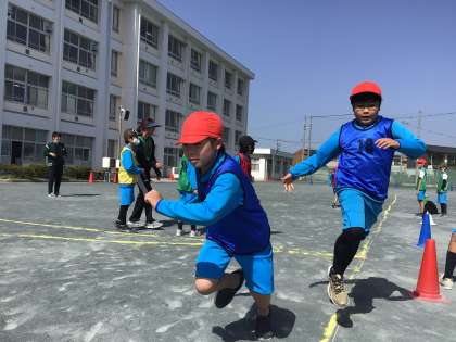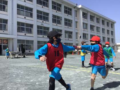 学級対抗で「リレー」と「玉入れ」を行いました。学級力を高めています。