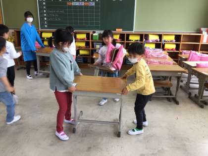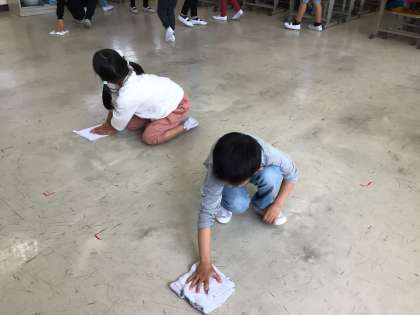 協力して机を運んだり、雑巾掛けの仕方を覚えて挑戦したりと、一生懸命に取り組みました。