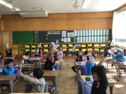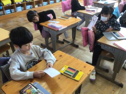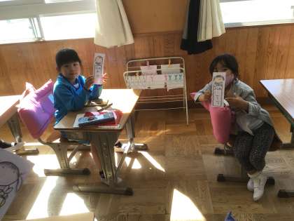 出来上がった日直さんカードを、見せ合いました。とっても上手にかけました。