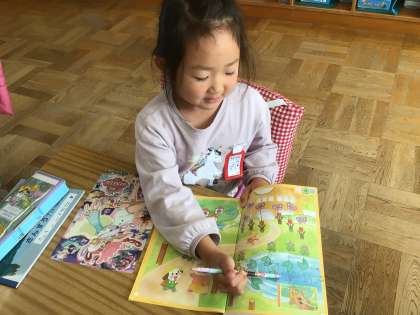 「どきどきがっこう」の学習です。仲間探しをして、同じものを囲んだり集めてみたりしました。