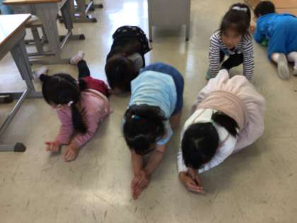 歌に出てくる動物や生き物になりきって、体を動かしながら歌いました。