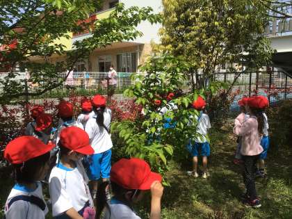 「はるみつけ」に出かけました。駐車場付近の花壇で、たくさんの花を見つけました。育ててくださっている方に会い、しっかりと挨拶したりお礼を伝えたりしました。