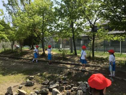 「しぜんのたからばこ」に行きました。小さな花に気づいたり、はちやちょうを見つけたりしました。