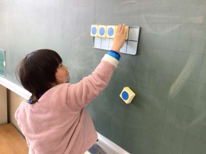 数字カードを見てブロックを並べたり、ブロックを並べた図(数図カード)を見て数字カードを出したりして、数字の対応を確かめました。
