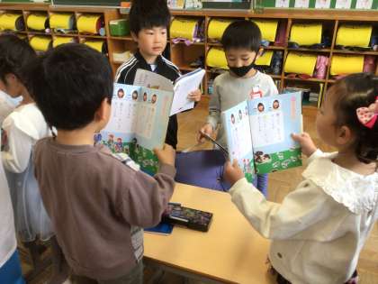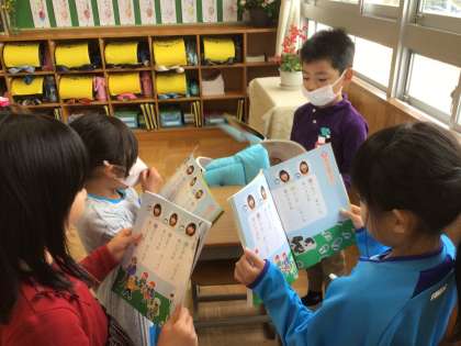 「あいうえおのうた」の学習です。友達どうしで、一緒に読む練習をしました。友達と一緒だと楽しいね。
