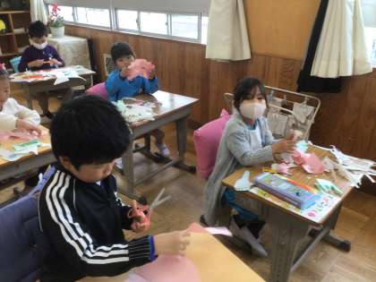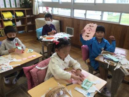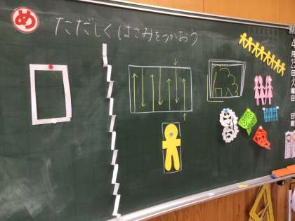 「ちょきちょきかざり」の学習です。はさみの使い方を、練習しました。上手に切れたかな?