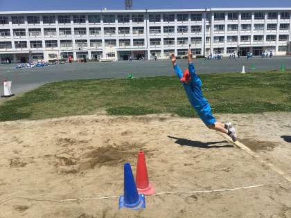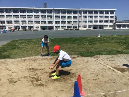 体力テストに向けて「走り幅跳び」に取り組んでいます。