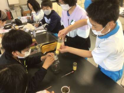 気体検知管を使って、空気中に二酸化炭素や酸素がどれくらいあるか調べました。 物を燃やす前後で変化はあったかな?