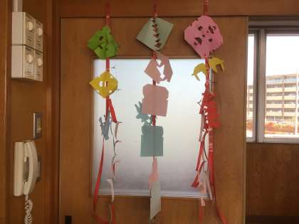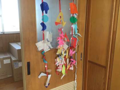 かわいい作品が、たくさんできあがりました。折り紙をまっすぐ切ったり、折ってから切ったりしました。