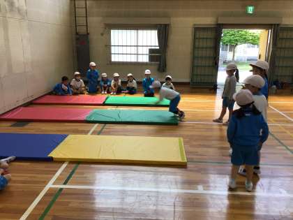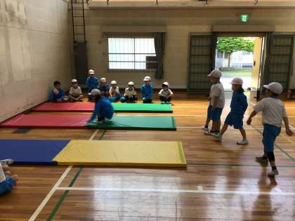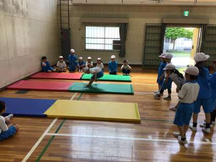 たち幅跳びの練習をしました。遠くまで飛べた友達からコツを教えてもらいました。