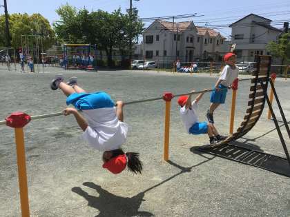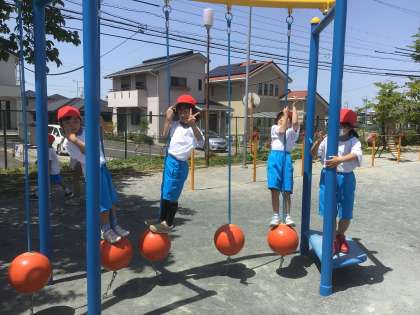 遊具で体を動かしました。みんな大好き、浄水の新しい遊具です。