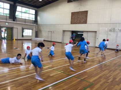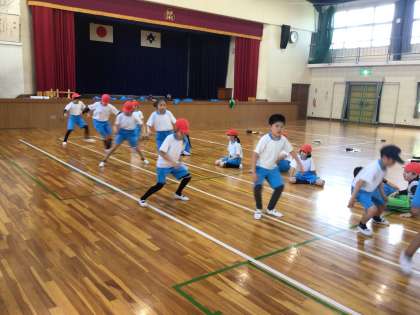 今日は体力テストに向けて「反復横跳び」に挑戦です。シャトルランに再度挑戦している子もいます。