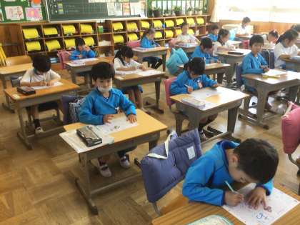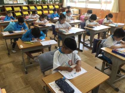 ひらがな練習、頑張っています。だんだんと難しくなり、画数も増えています。それでも、お手本をよく見て練習しています。