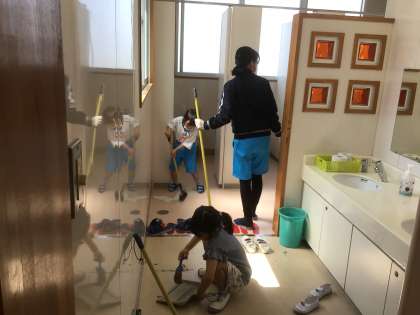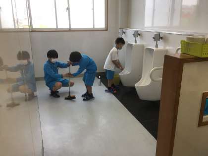 トイレ掃除を、ていねいに行っています。少しでも汚れがあると、休み時間を使ってもしっかり掃除をしてくれています。