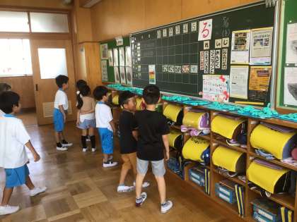 「なんばんめ」の学習です。自分のロッカーや、飾られている図工作品の位置を説明しました。「右から3番目、上から・・・」