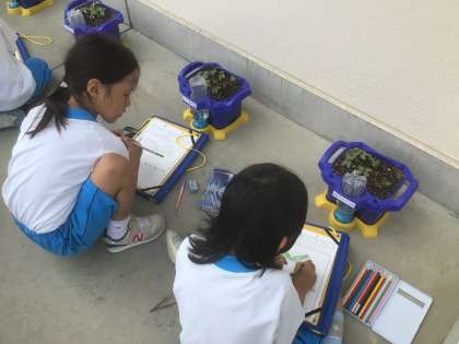 あさがおの芽が出たので、観察をしました。