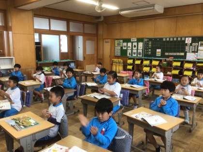 楽器を使って、リズム打ちをしました。音楽室のカスタネットを借りて、演奏しました。